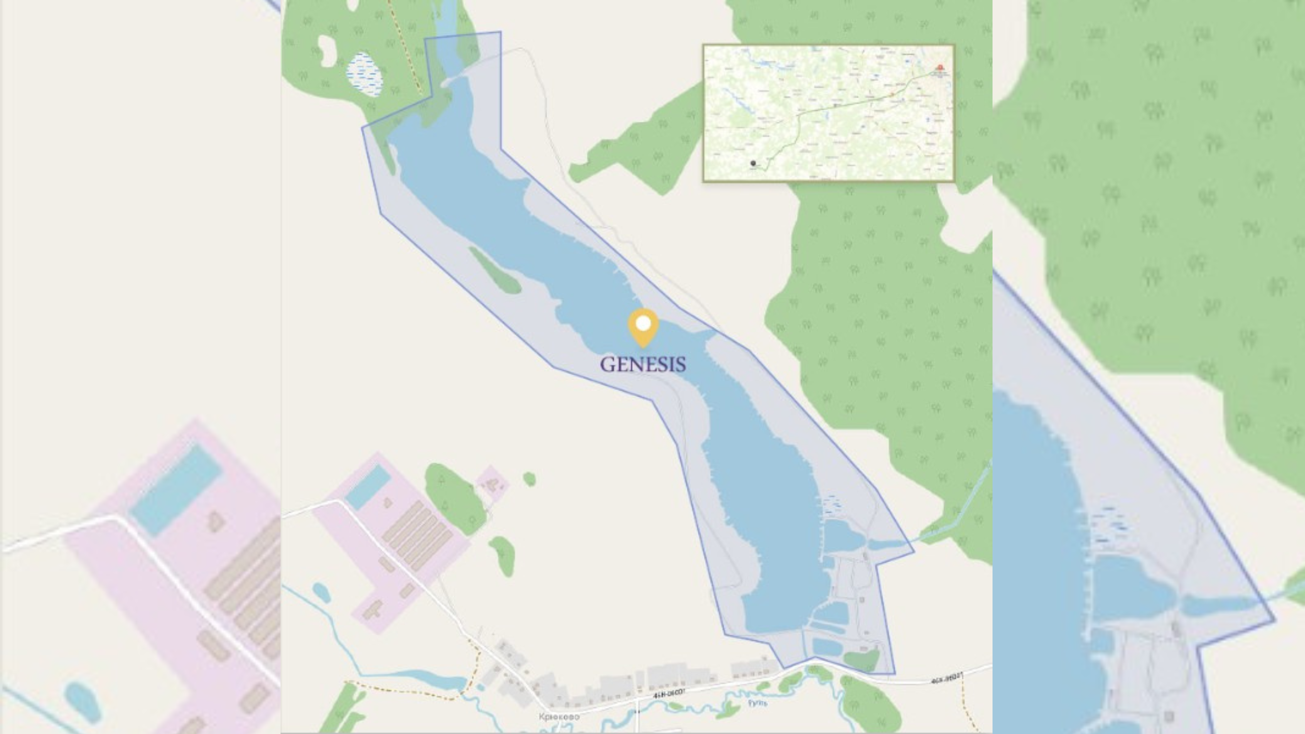 Единственный оазис в Москве и близлежащих областях с уникальным природным ландшафтом, где в частной собственности находится водоём протяжённостью 3,5 км, (зеркало водоёма 50 Га), а сам участок в окружении заповедных лесов (113 Га общая территория) Нарофоминского района, создаёт атмосферу дикого нетронутого кусочка природы на котором вы можете расположить клубную резиденцию или эко-ферму.